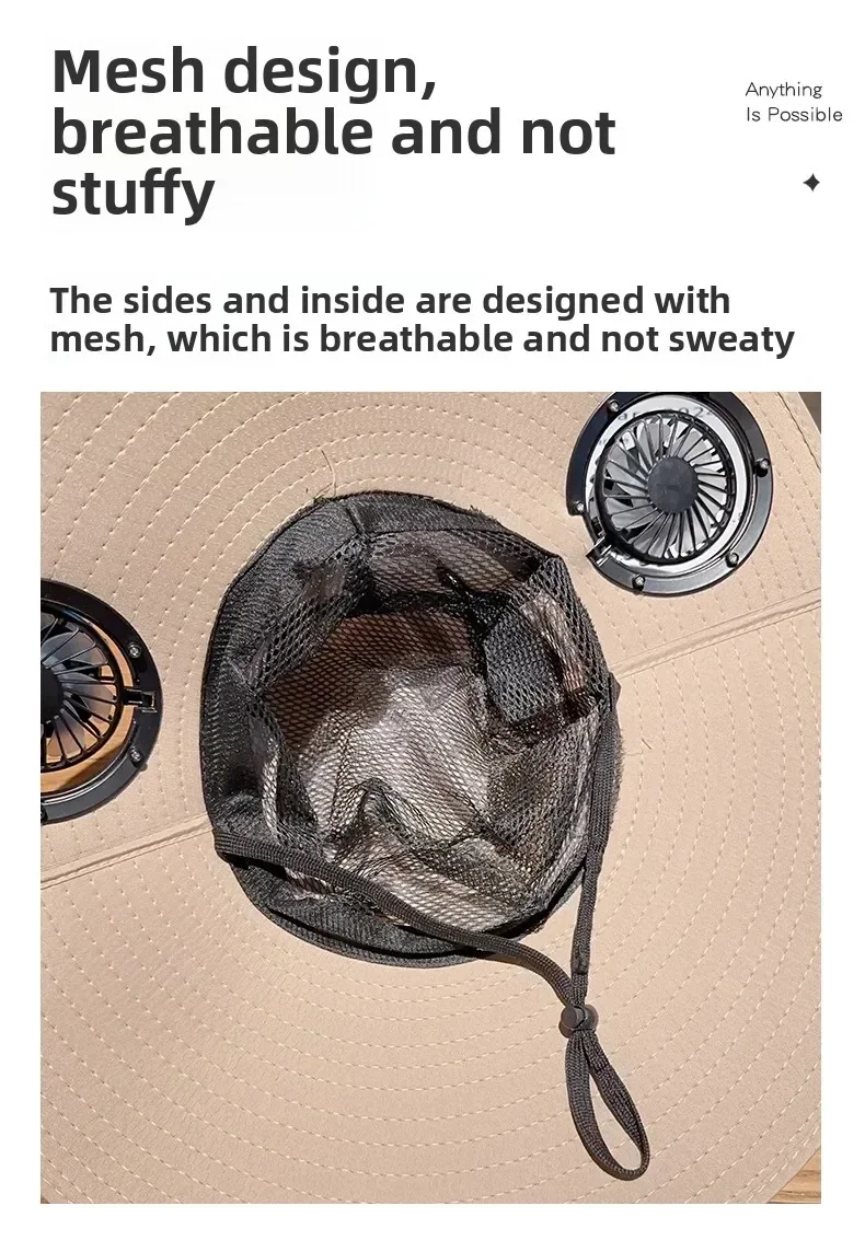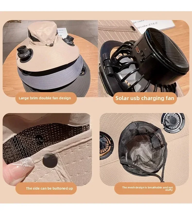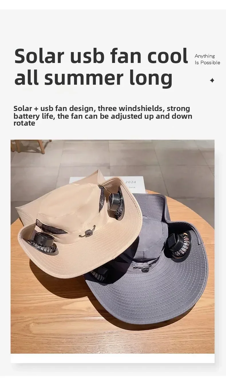 2025 Wide Brim Solar Fan Hat Sun Protection with Dual Power (Solar USB) Adjustable Outdoor Beach Hike Fishing Hat for Men Women