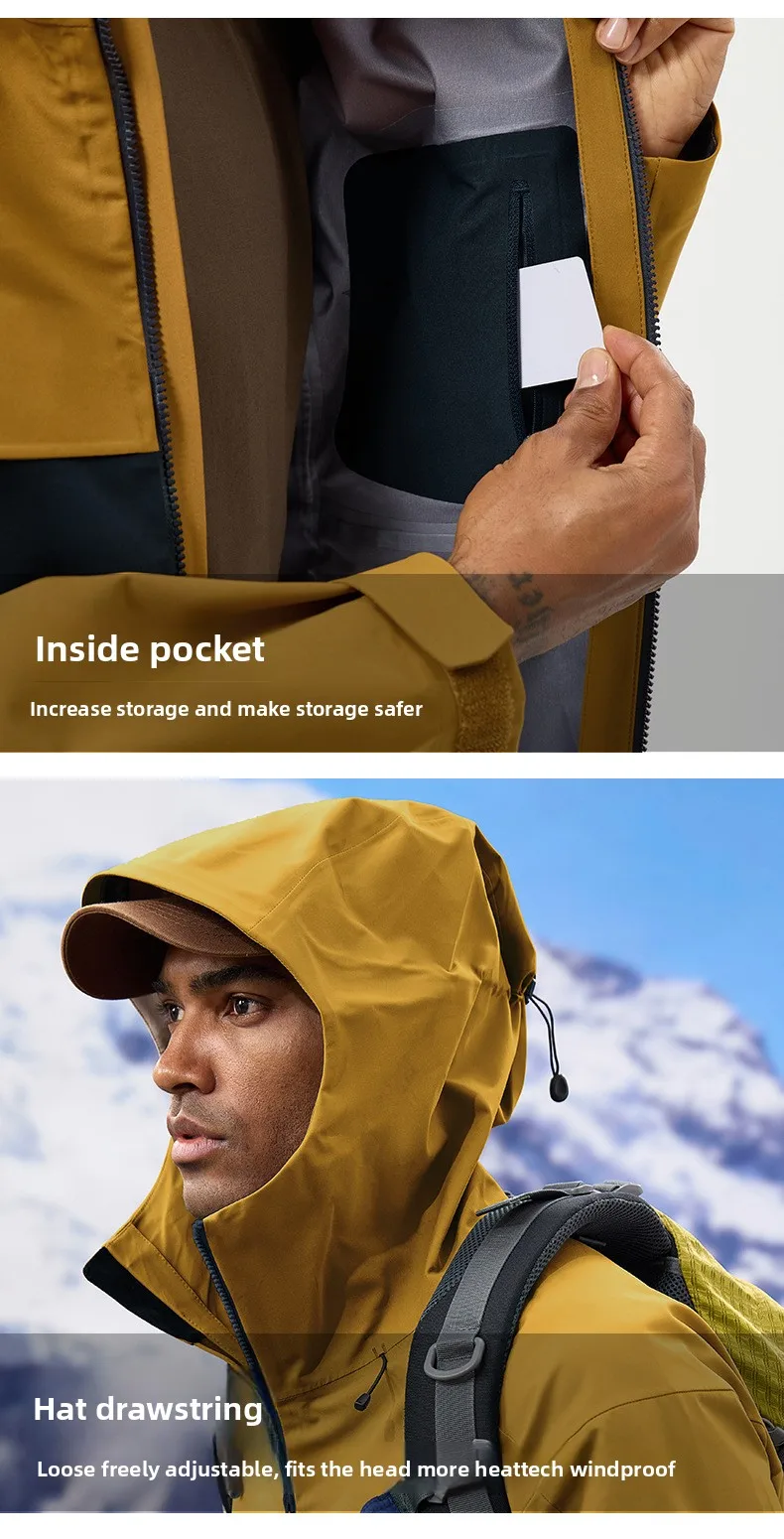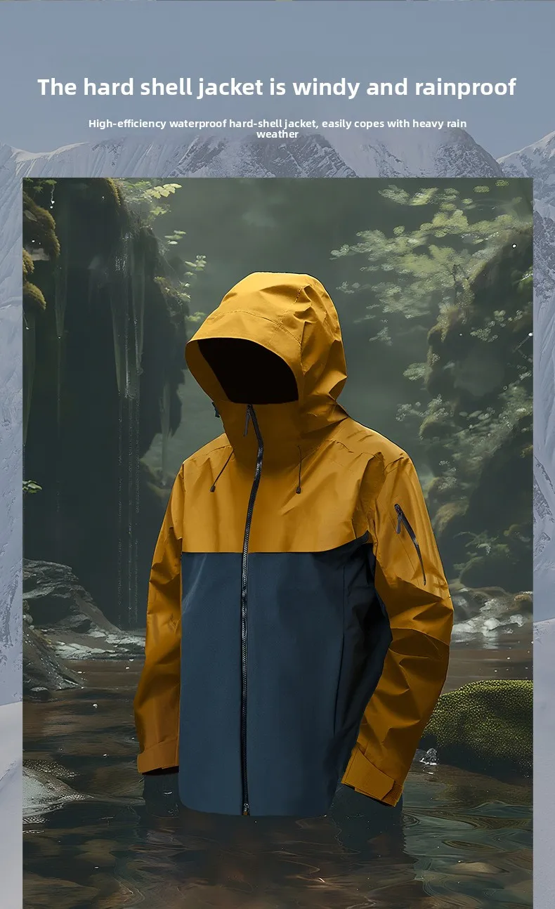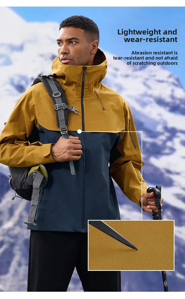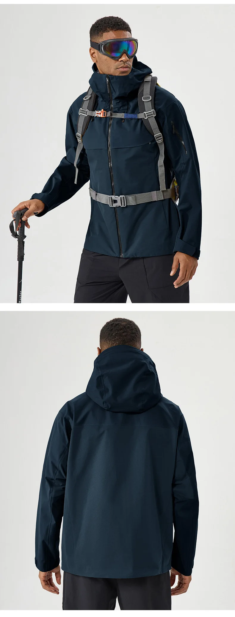 Autumn and winter hard-shell windbreaker windproof rainproof breathable outdoor hiking mountaineering ski suit hooded jacket