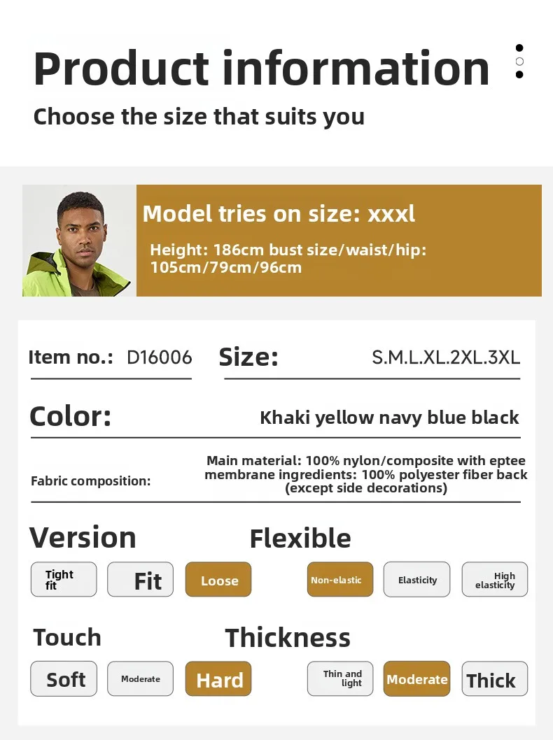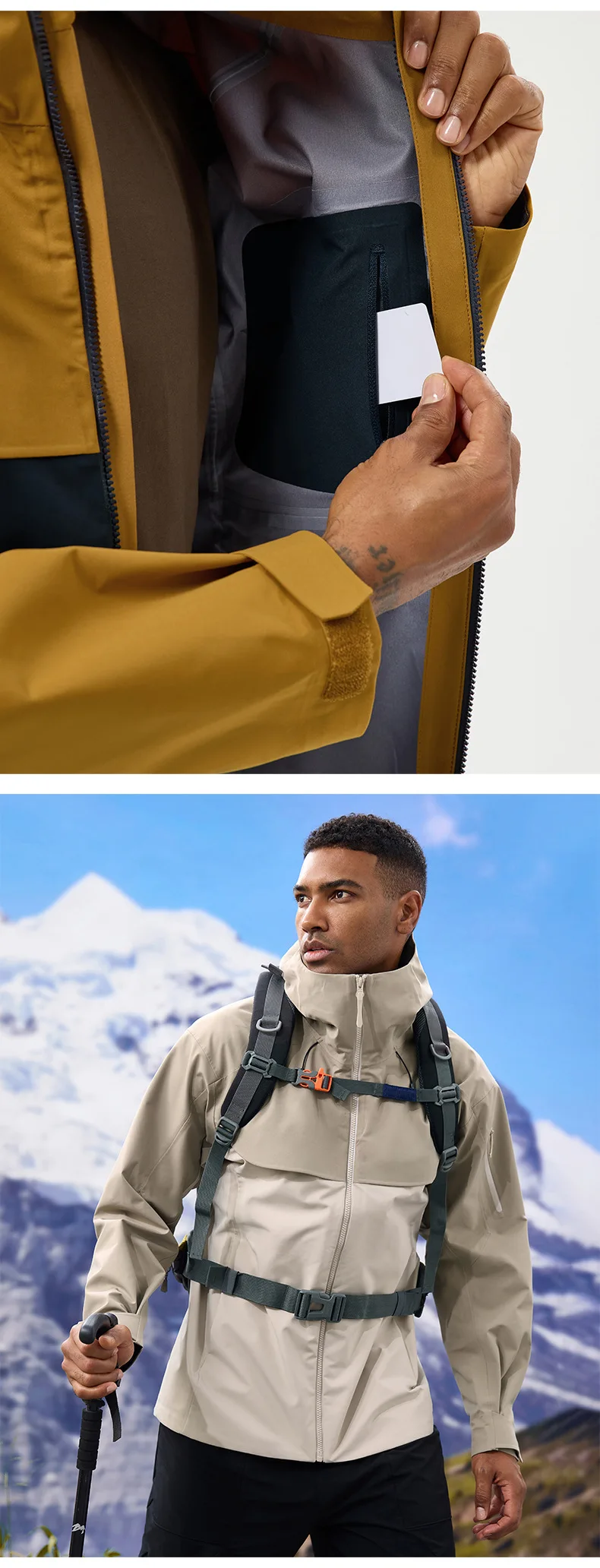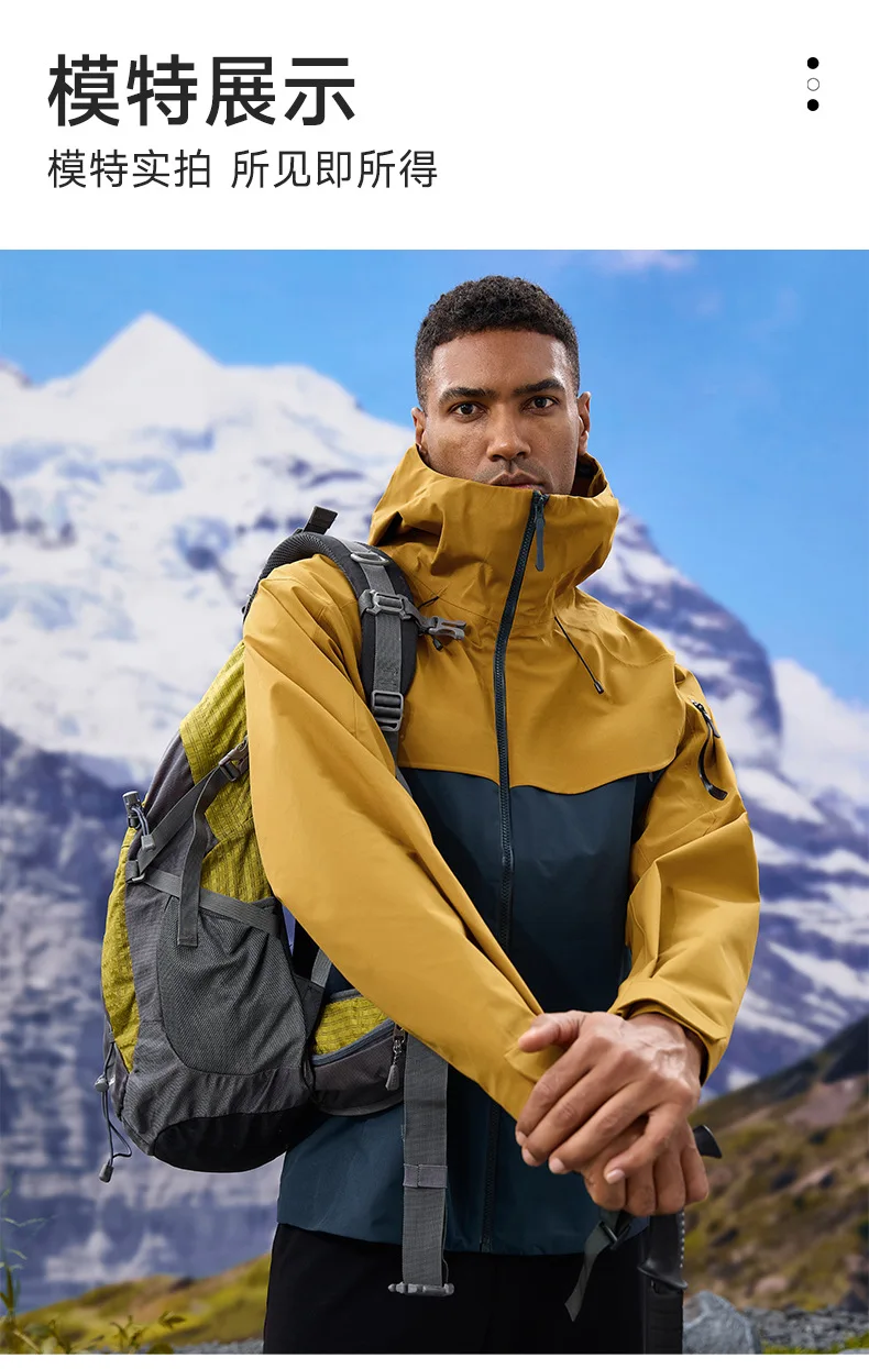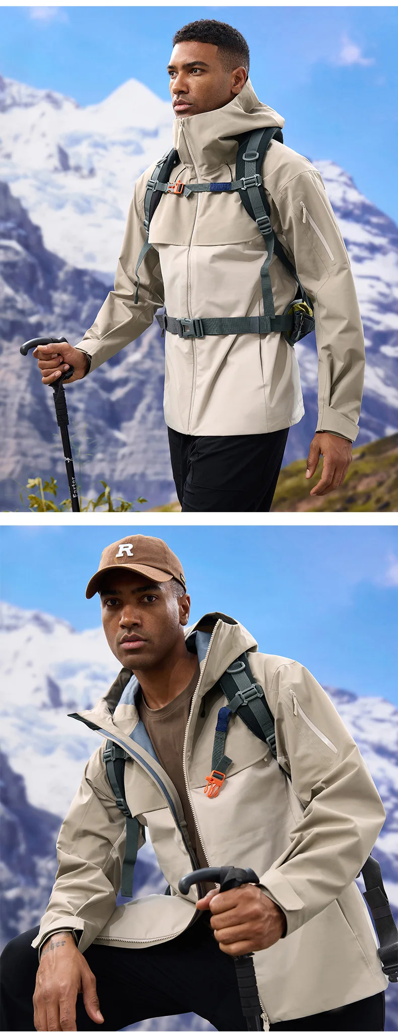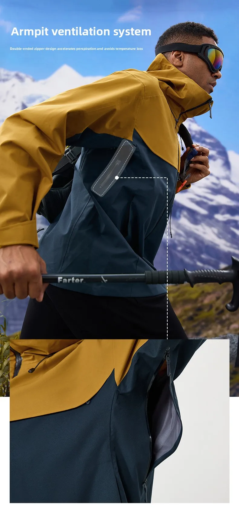 Autumn and winter hard-shell windbreaker windproof rainproof breathable outdoor hiking mountaineering ski suit hooded jacket