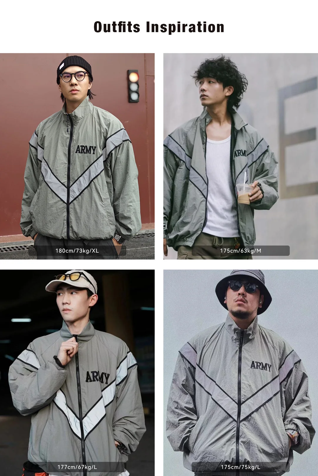 Maden Bomber Jackets For Men Vintage Training Coat Vibe Wind Reflective Hooded Quick-drying Jacket Male Blue