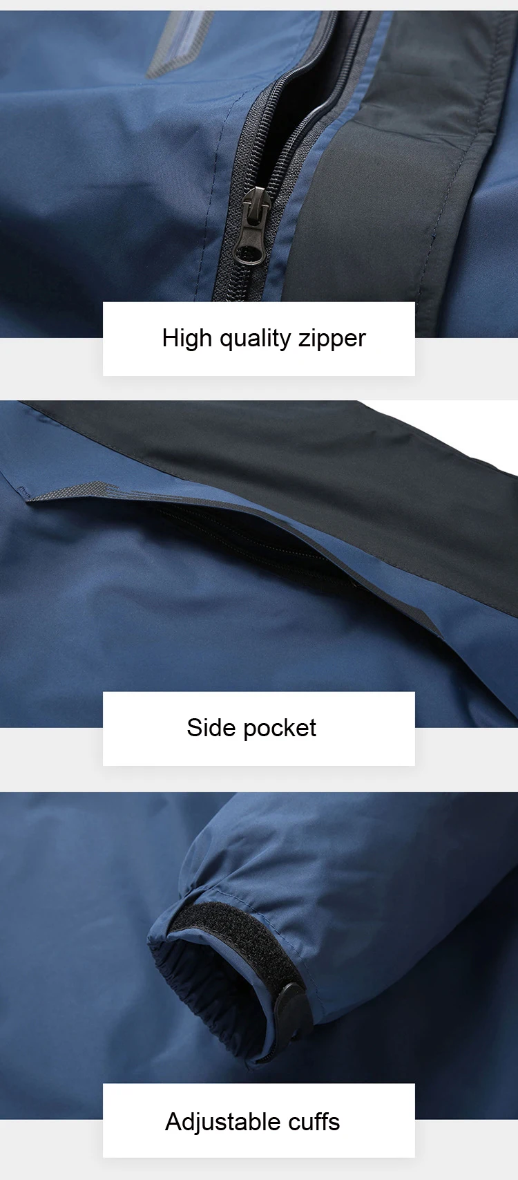 Simple and Warm Design — Fully sealed seams and soft lining. Detachable hood with velcro design to better protect your head from the cold wind blows