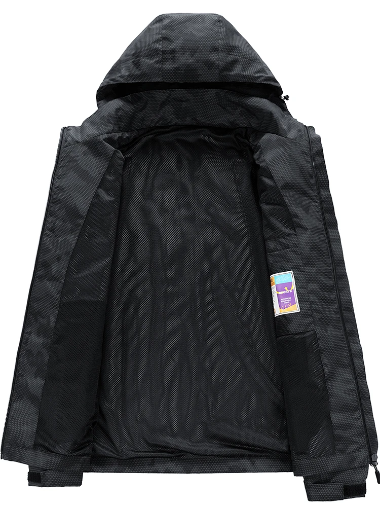 Men’s Outdoor Hiking Jacket Waterproof Windbreaker Hooded Coat Lightweight Sportswear for Camping Trekking Climbing Travel