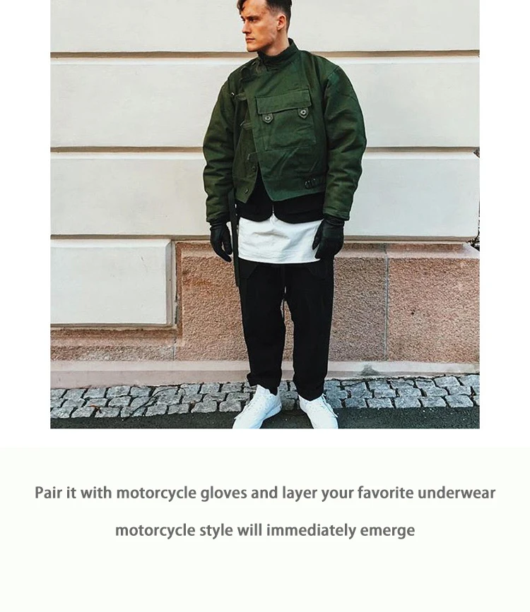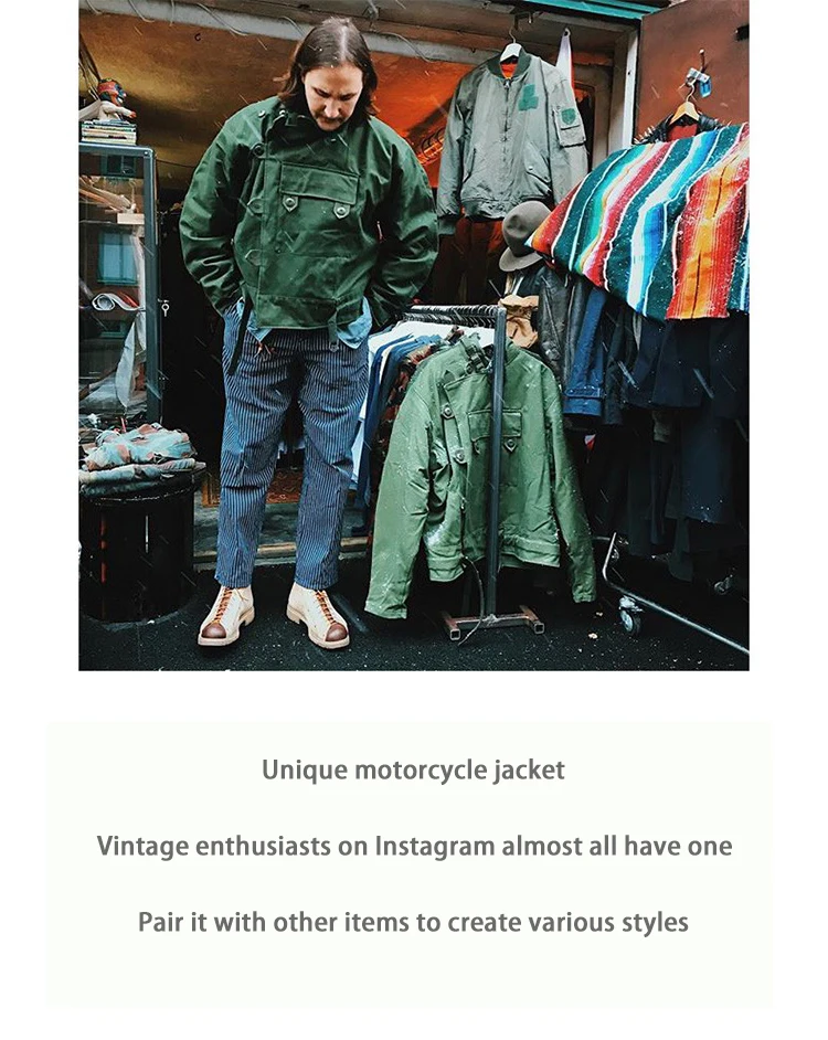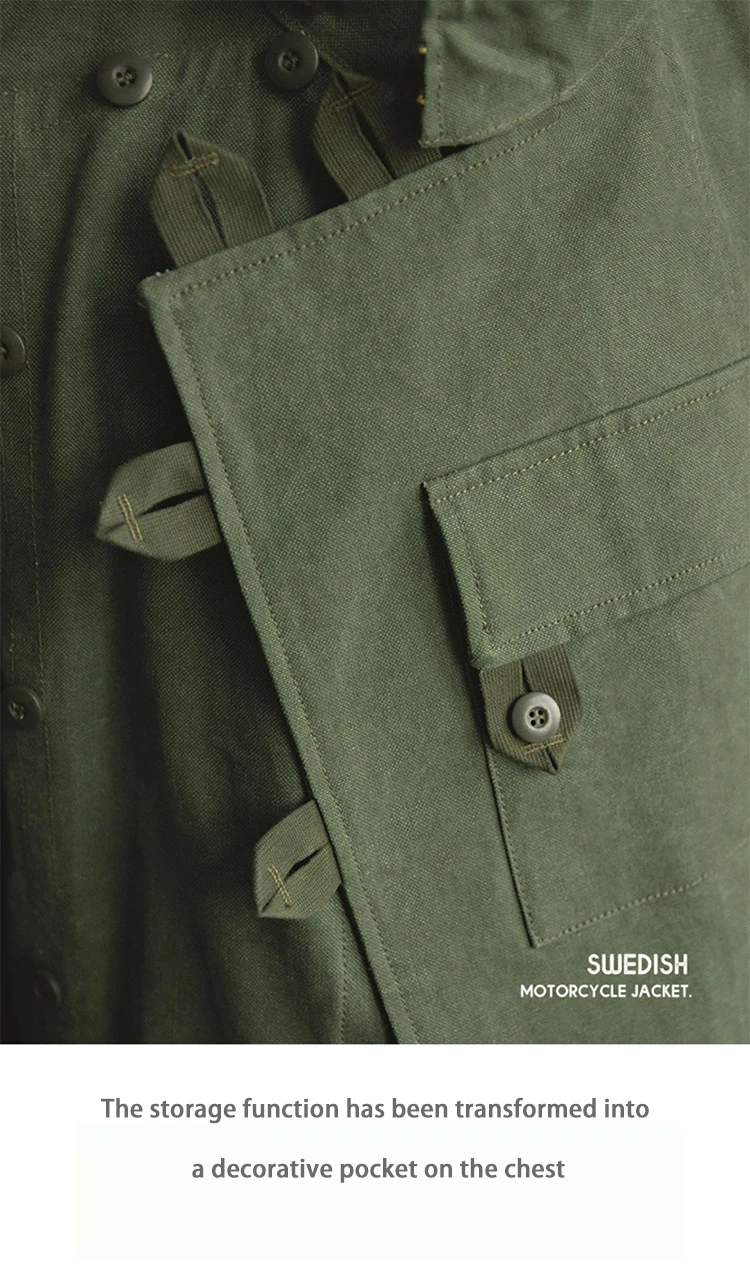 Swedish motorcycle jacket, men’s retro military green casual cropped jacket, 100% cotton canvas workwear asymmetric safari style