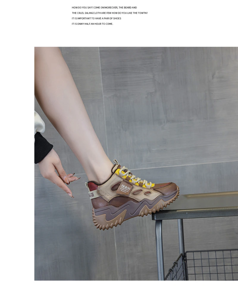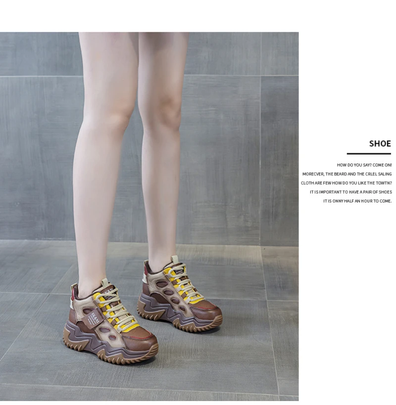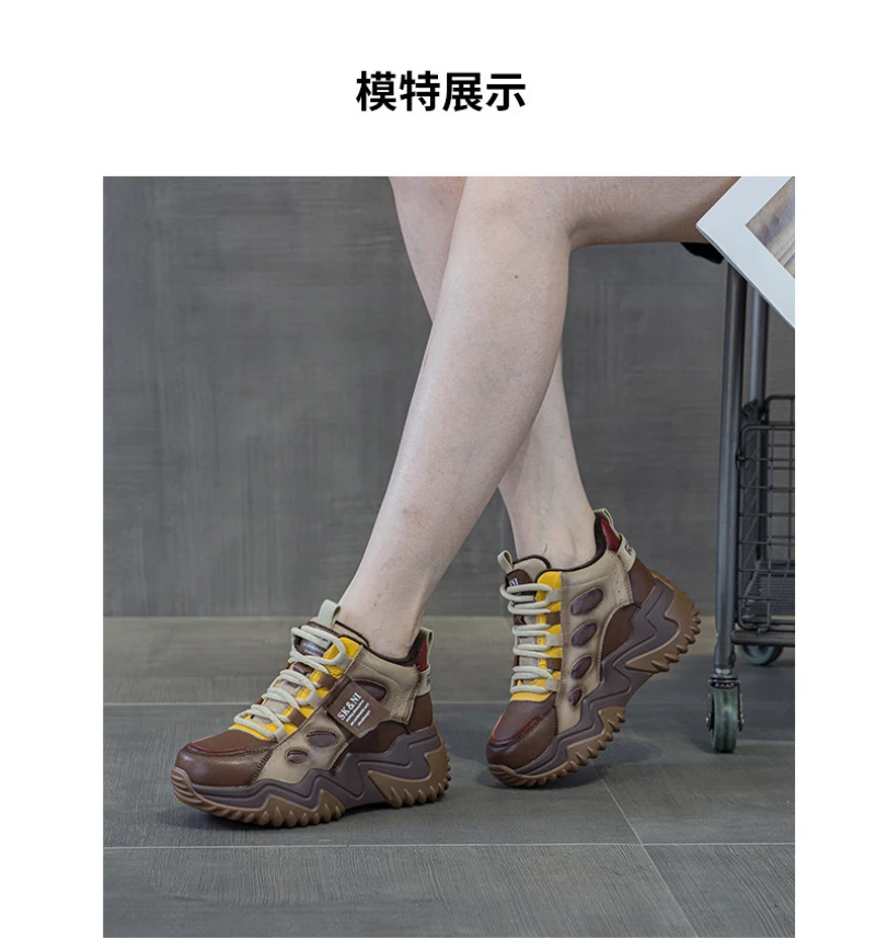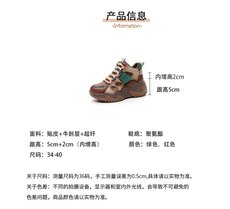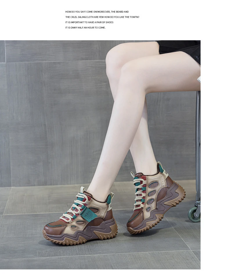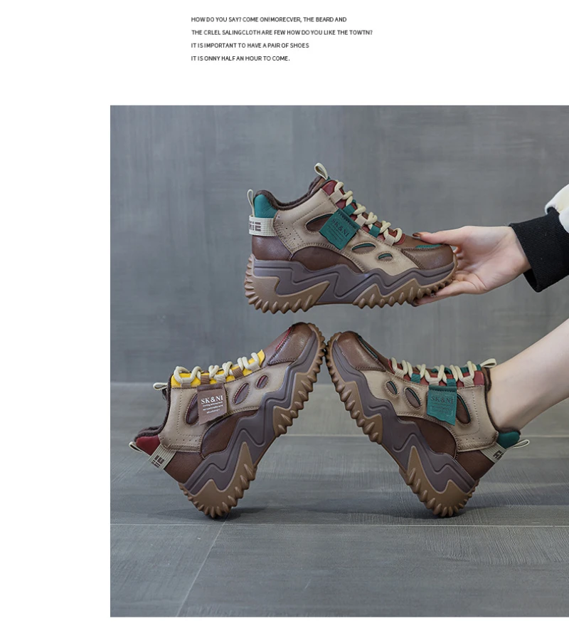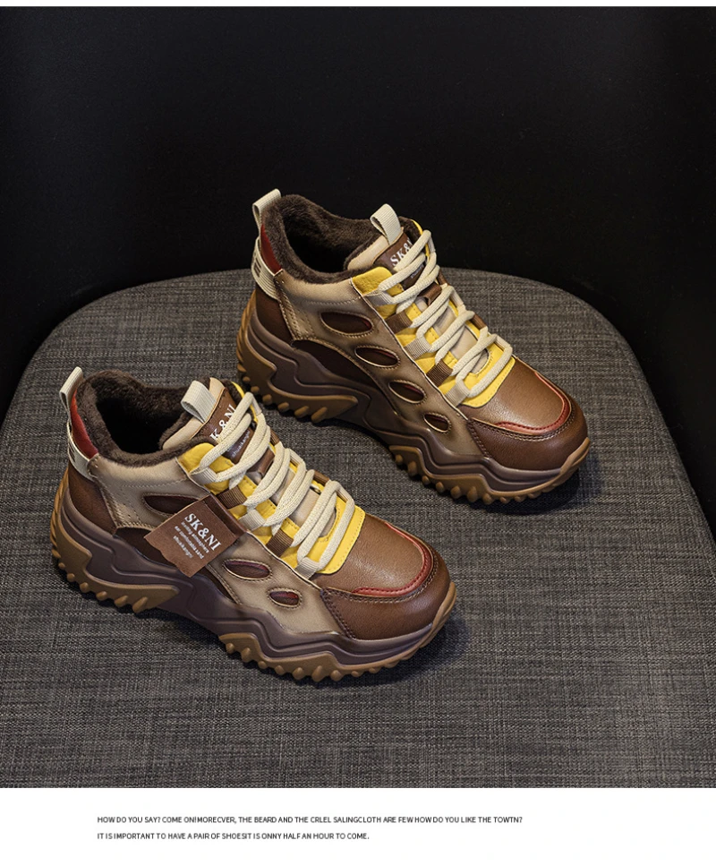 Womens Brown Green Color Block High Top Chunky Platform Dad Sneakers Fleece Lined Lace Up Height Increasing Warm Sports Shoes