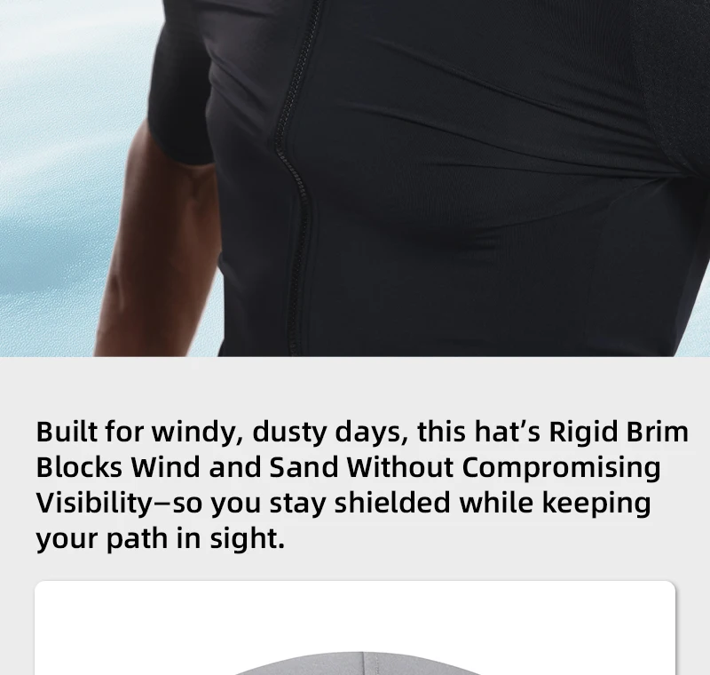 •Built for windy, dusty days, this hat's Rigid Brim Blocks Wind and Sand Without Compromising Visibility-so you stay shielded while keeping